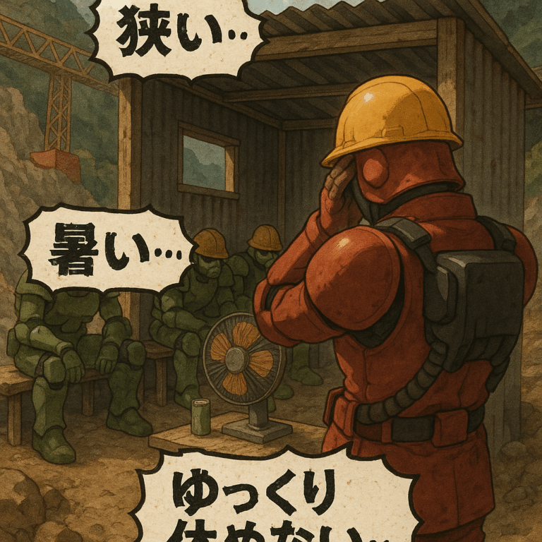 インフラの工事現場で橋梁や鉄塔、山間部や屋外で長期間通い詰めて作業する時にいろんな工事会社の詰所が狭く休憩環境が整えることができない。2025年6月から熱中症対策も義務化され、作業員の職場環境も良くしてあげたい。冬も同様。