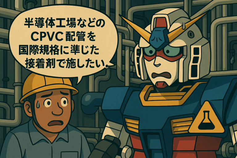 半導体工場におけるプラント配管では、高規格な耐久性や耐薬品性が求められます。また、ISO規格や環境規制が厳しい国々の基準に対応した有機溶剤で施工する必要があります。