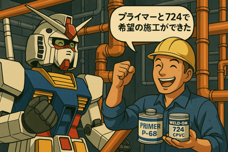 高規格な耐久性や耐薬品性の試験に合格しているウェルドオンCPVC配管シリーズから、ウェルドオン724を選定し納品しました。化学薬品に対応した性能試験をクリアしたCPVC用の接着剤である724と、プライマーP-70を使用することで、国際規格に準拠した接着施工が実現しました。従来の国内メーカー有機溶剤と比べ、揮発性物質(VOC)の排出が約30%削減され、環境にも作業者にも優しい接着剤です。