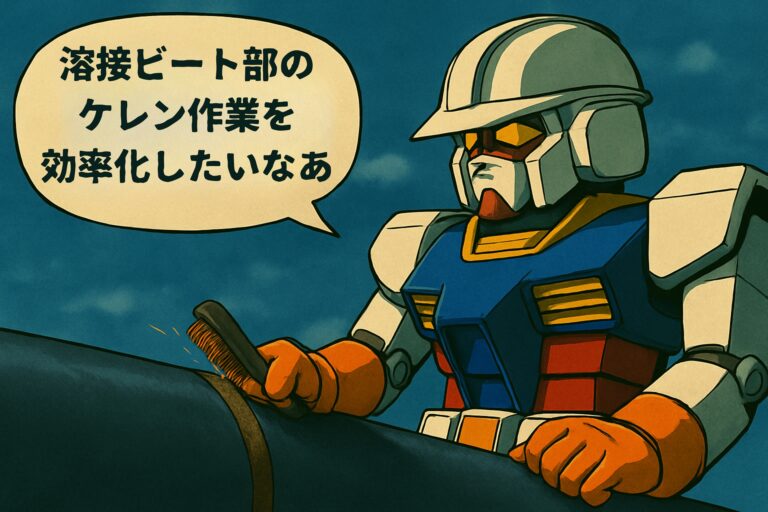 工場施工でも現場施工でも、大口径の溶接鋼管のビード部には1種ケレンなどの処理が求められ、その後に防食施工(塗装や熱収縮チューブなど)が行われます。特に水道鋼管の場合、溶接部に対して外側と内側の両方から1種ケレン相当の素地調整が必要です。しかし、熟練労働者の不足が懸念されており、自動化による省力化と品質向上が求められています。