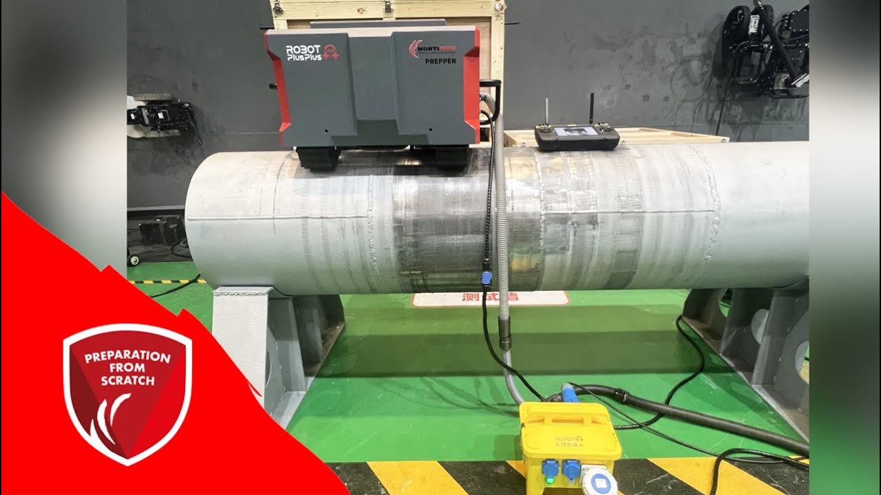 モンティパワー社が開発した自動制御型自走式ケレン装置「プレッパー」は、磁石ホイールによって鋼管表面を落下せずに走行できる優れた装置です。さらに、ブリストルブラスターのブラシを使用することで、溶接ビード部に1種ケレン相当のアンカープロファイルを形成できます。