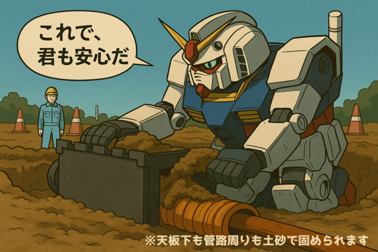 電気・ガス・水道など、多様な管路が地中で複層的に埋設されているインフラ設備では、他工事による掘削時の損傷リスクが常に存在します。従来は上面を樹脂板や鉄板で覆う方法が一般的でしたが、斜め・横方向からのダメージには対応しきれず、また埋め戻し時の転圧不良による土砂の陥没リスクも課題でした。