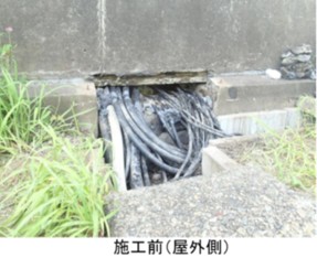 既設のケーブル貫通部の浸水対策を、設備を止めずに施工せよ!