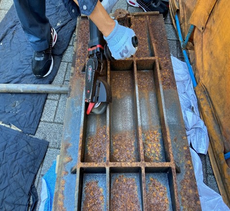 既設の鉄蓋の健全度調査の際、現地にて鉄蓋の錆を除去して残肉厚を測定します。ワイヤーブラシにはムラが出てしまい時間もかかります。ディスクグラインダーは錆だけでなく鉄蓋本体も削ってしまい正確な診断を行えません。